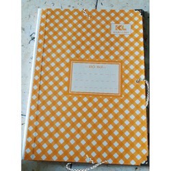 Bìa bằng giấy cứng, có 3 dây nằm ở 3 cạnh bìa.