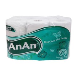 Giấy cuộn Anan thiết kế 2 lớp, tăng tính dẻo dai và mềm mịn cho cảm giác dễ chịu. Dùng giấy để vệ sinh cá nhân hoặc lau chùi, dọn dẹp nhà cửa. Đóng cuộn gọn gàng, không bị bung lõi phù hợp với các dụng cụ đựng giấy.