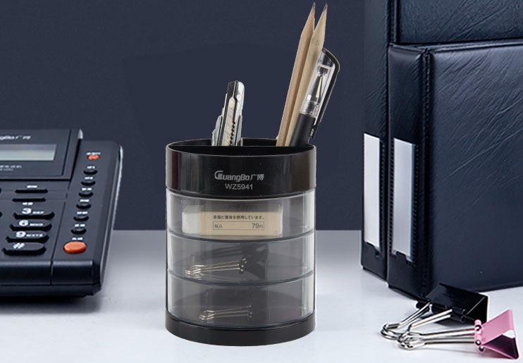 Hộp bút 3 ngăn GuangBo WZ5941 là sản phẩm đa năng phù hợp với nhiều đối tượng người dùng khác nhau từ học sinh, sinh viên đến nhân viên văn phòng. Ngoài 3 ngăn nhỏ dùng để cắm bút, thước kẻ, kéo, dập ghim ở trên, sản phẩm còn thiết kế thêm 3 ngăn kéo dọc theo thân hộp để đựng đinh ghim, kẹp bướm, chìa khóa… giúp bạn có nơi học tập, làm việc chuyên nghiệp và gọn gàng. 3 ngăn kéo trong suốt dễ dàng quan sát đồ dùng bên trong, tiện lợi khi tìm kiếm